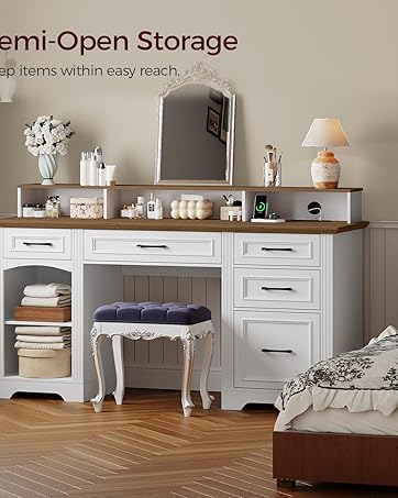 Printer Stand with Charging Station: A practical power strip is designed beneath the top panel, providing 2 standard outlets and 2 USB ports for your printer, household appliances and other devices.